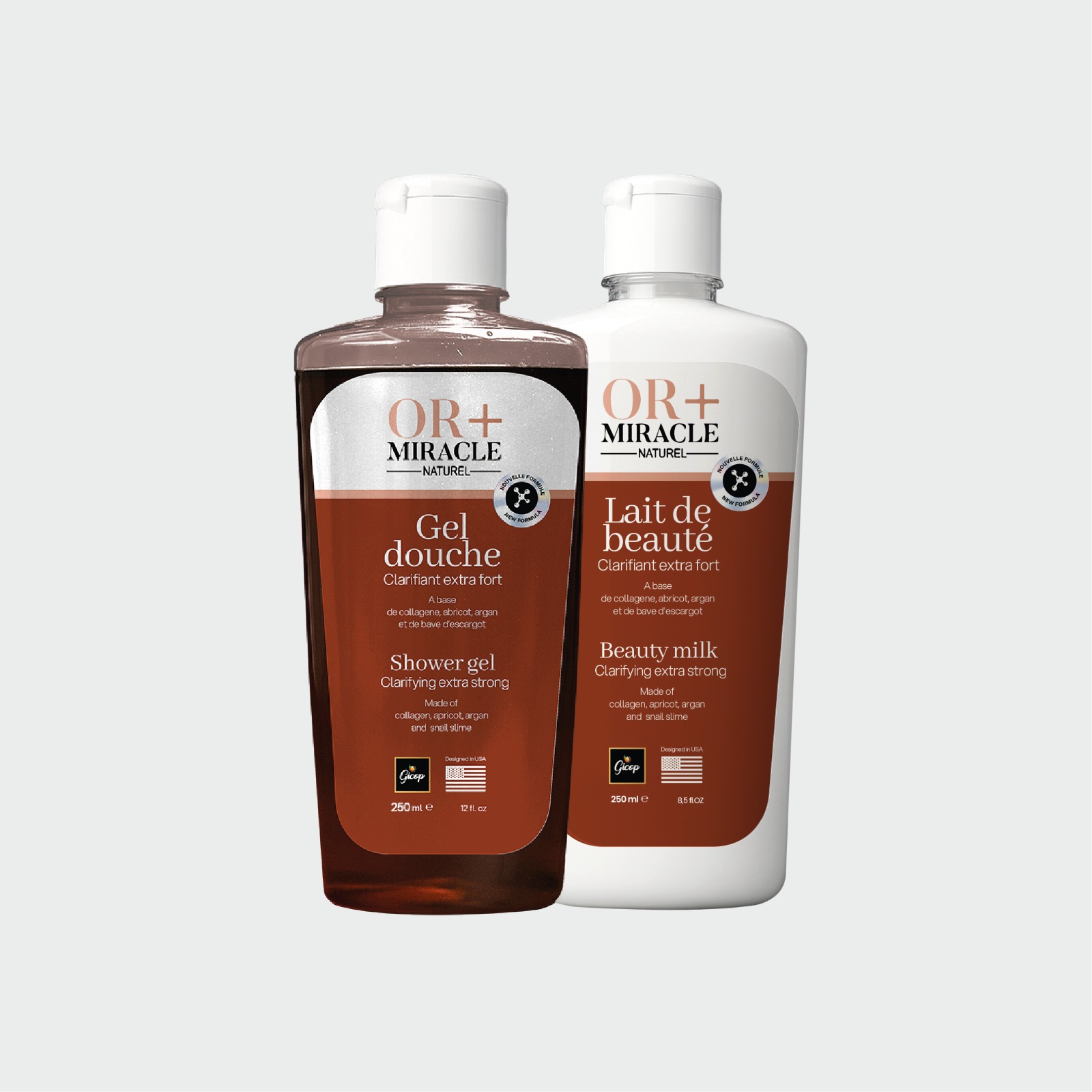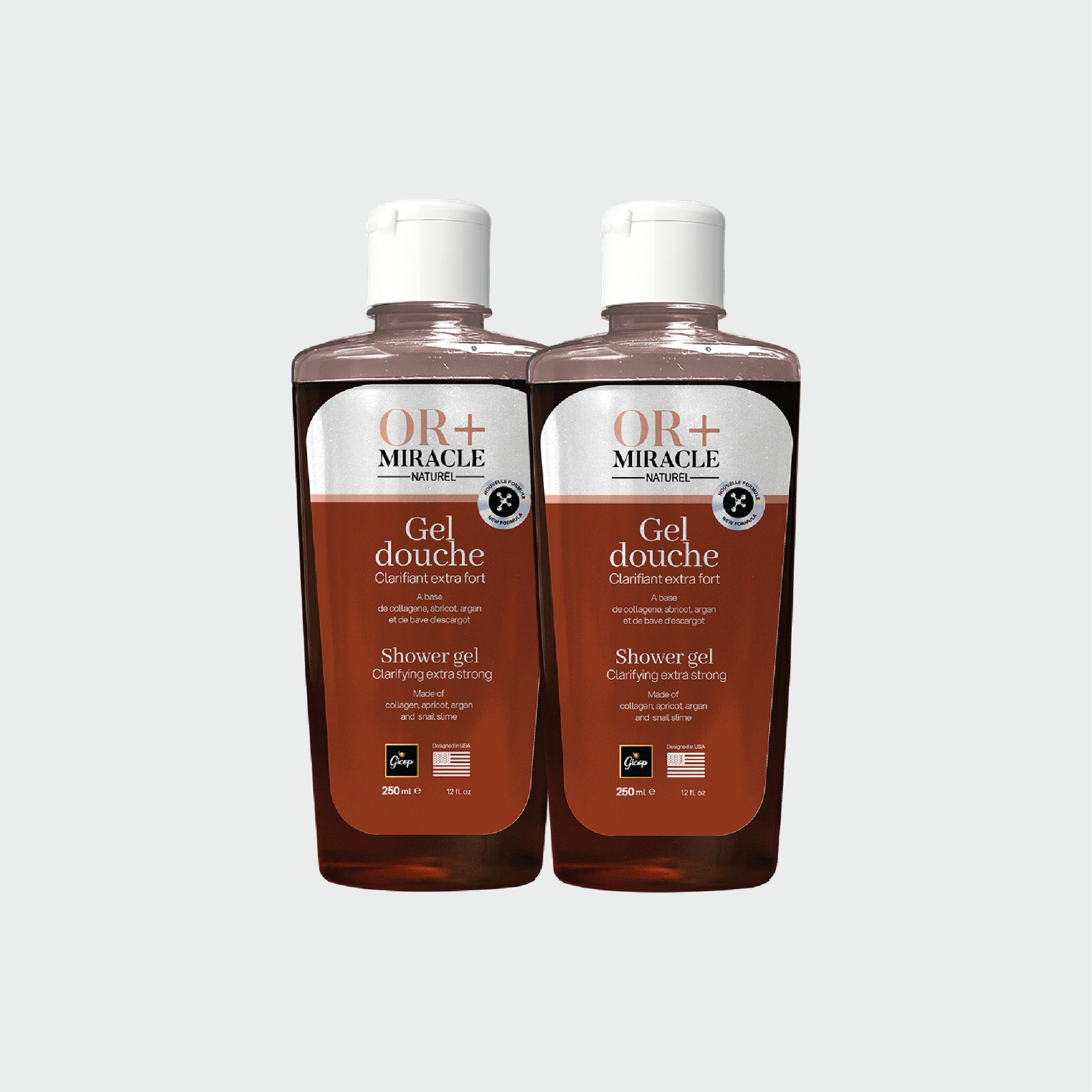 Gommant, Hydratant et Hyper clarifiant, le gel douche OR MIRACLE➕ renouvelle les cellules mortes de votre peau au quotidien, l’hydrate, la nettoie en profondeur de toutes impuretés et redonne luminosité à votre peau. Il fait briller votre peau.